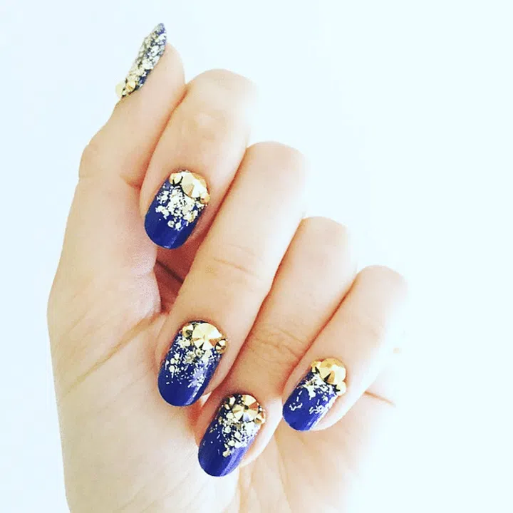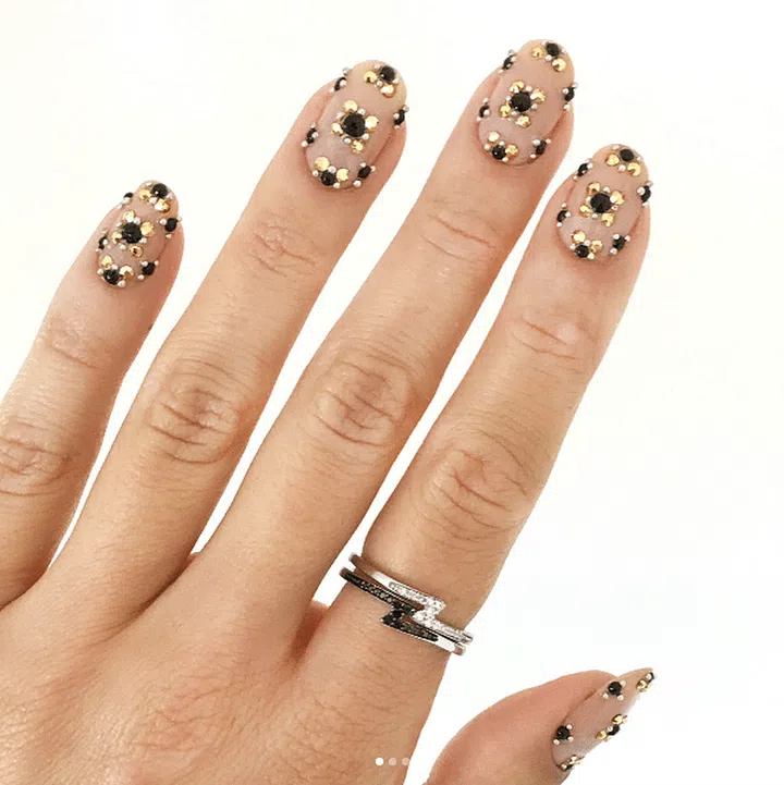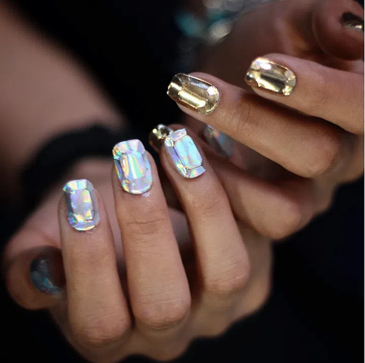 Get fun, and bold with gem-inspired nails in gold and silver. Plus, they'll bring extra glamour to that diamond ring selfie.