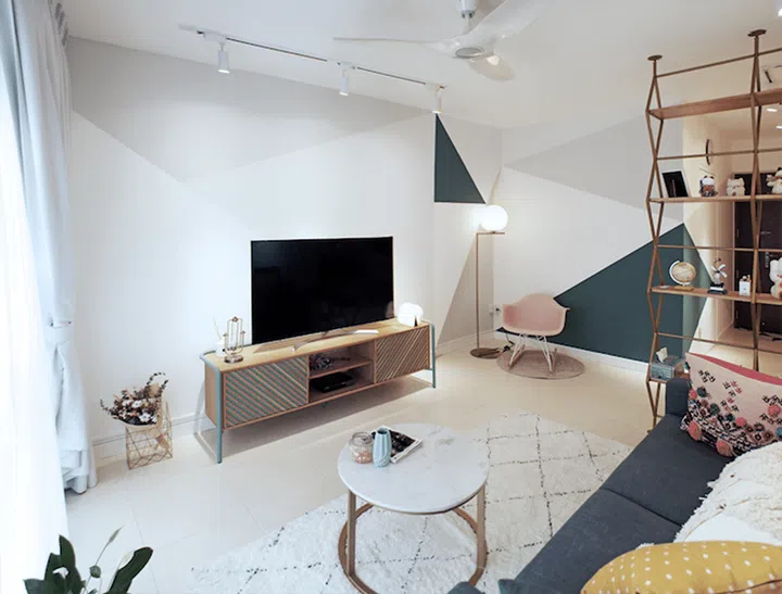 Raymond Seow, the designer at Free Space Intent, gave this home just the right kind of edge using a geometric motif with pastel shades on the walls.