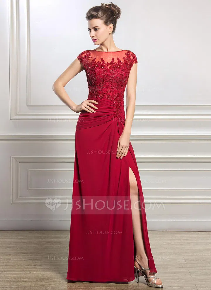 Balance is key when you're looking to show some skin, like this cap sleeved gown with slit skirt.
