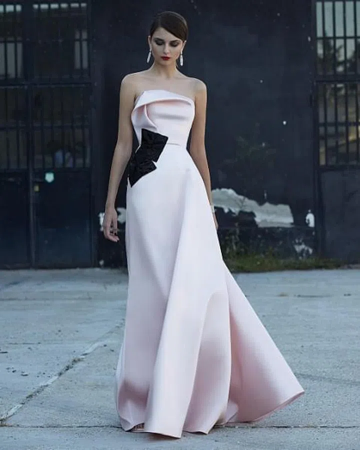 For the glamorous mother of the bride: A stunning gown with origami folds is modern and sophisticated.