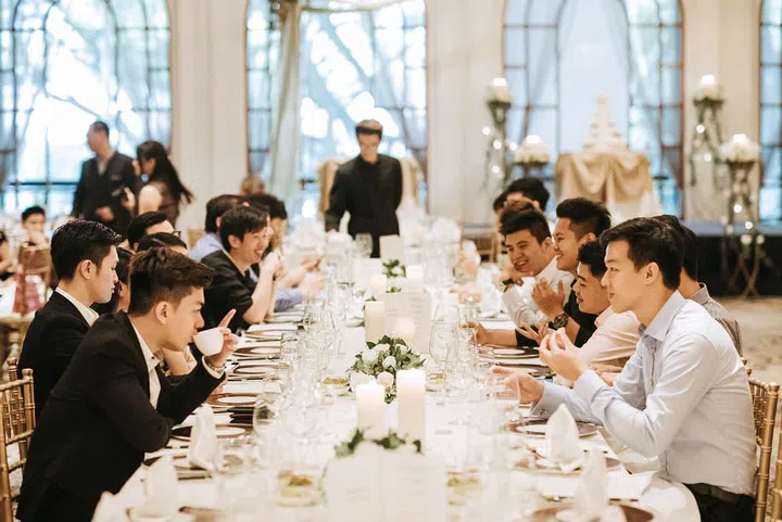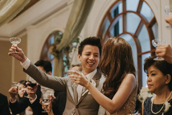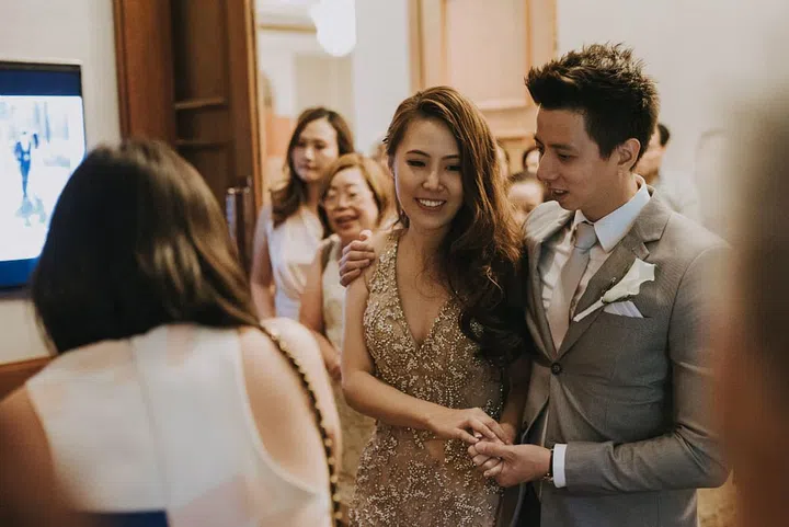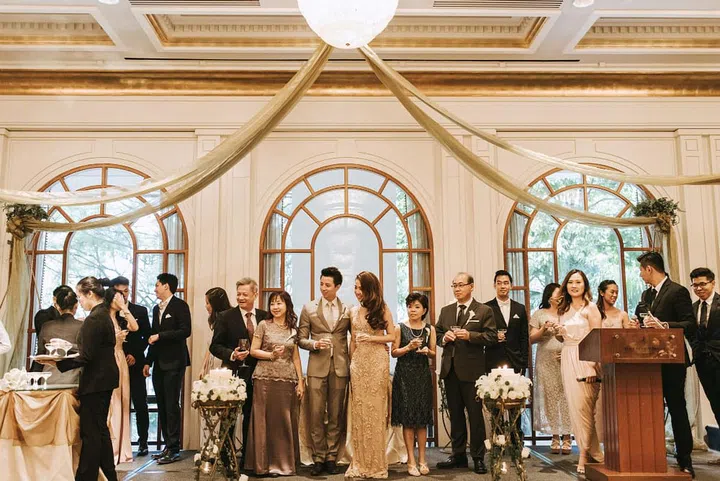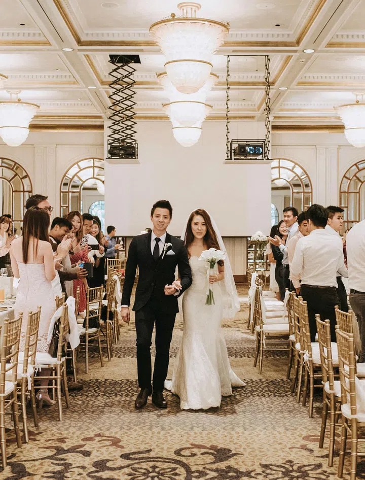 Jenn Tan and Jiaming Soh, both 28, tied the knot in a celebration with a classy gold and white theme at the Four Seasons Hotel Singapore.