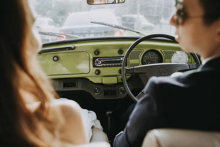 The couple's vintage wedding ride was kindly lent to the couple by the bride's cousins.
