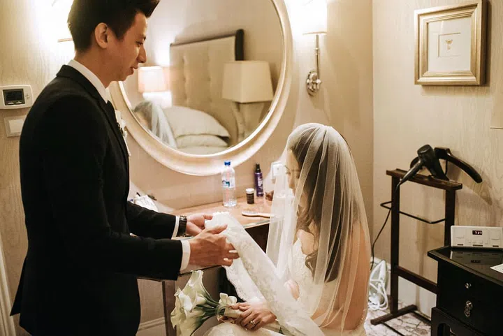 The couple spent many nights planning their wedding over Skype, with Jiaming often being away for long periods of time due to his occupation as a RSAF pilot.