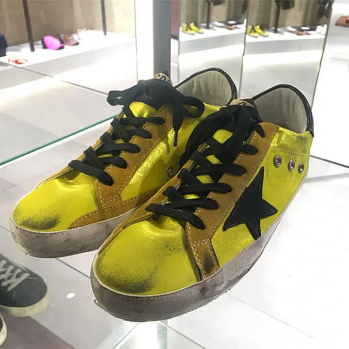 Distressed, pre-loved, scuffed up - whatever you wish to call them - Golden Goose Deluxe Brand's (GGDB) sneakers are the perfect luxury item for your casual encounters. The trendy brand, which is quintessentially known as Italy's version of Converse, has built its cult label upon purveying scuffed-up sneakers deliberately pre-beaten up with "wear and tear". Offering sneakers in crinkled gold leather, painterly worn-in whites and purposefully placed torn and tatters, GGDB hits it where it counts with subversive luxury casual wear.