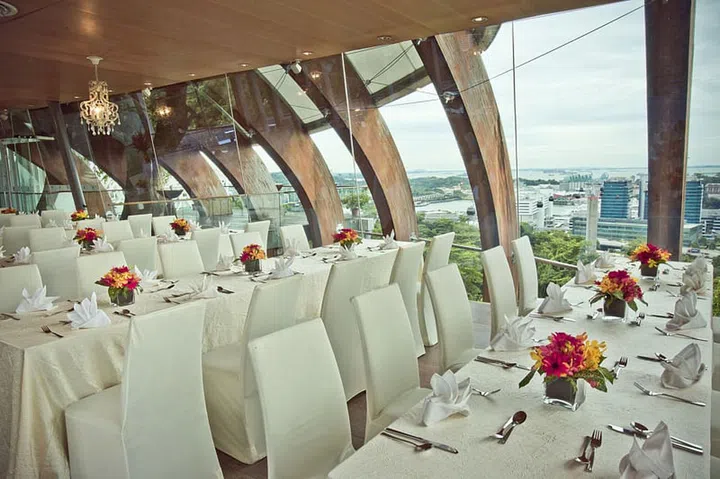 Perched at the highest point of Faber Peak, this intimate air-conditioned space has surrounding full-height glass windows so you and your guests get to enjoy astounding views of the sea and garden landscape. Its ballroom also features floor-to-ceiling glass windows for scenic views.