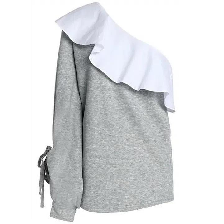 Ruffles are a major trend this spring (it feels like they’ve been on trend forever now) so this one shoulder ruffle hemmed long sleeve top is a great addition to your spring ‘18 office wear. Made from cotton-terry, it’s loose fit will keep you comfortable at the desk and can be worn over your favourite pants or tucked into a pencil skirt for the ultimate #girlboss look.