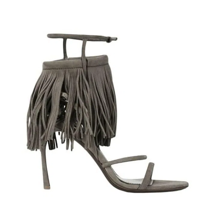 Fringing is a big trend this spring, which is why these Miu Miu sandals in deep grey are a fab buy for your working wardrobe. With delicate ankle and toe straps juxtapositioned against the oversized fringing that hangs down the heel, they’re both elegant and edgy all in one shoe. Try team this with your favourite skirt or dress - avoid pants as you want these shoes to be seen (and take centre stage).