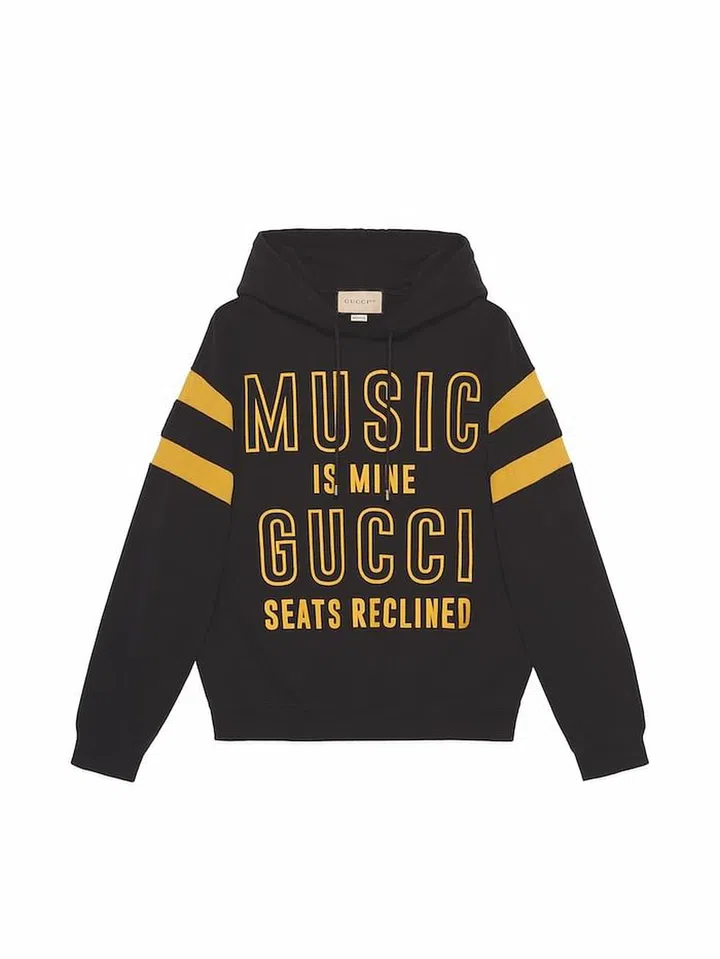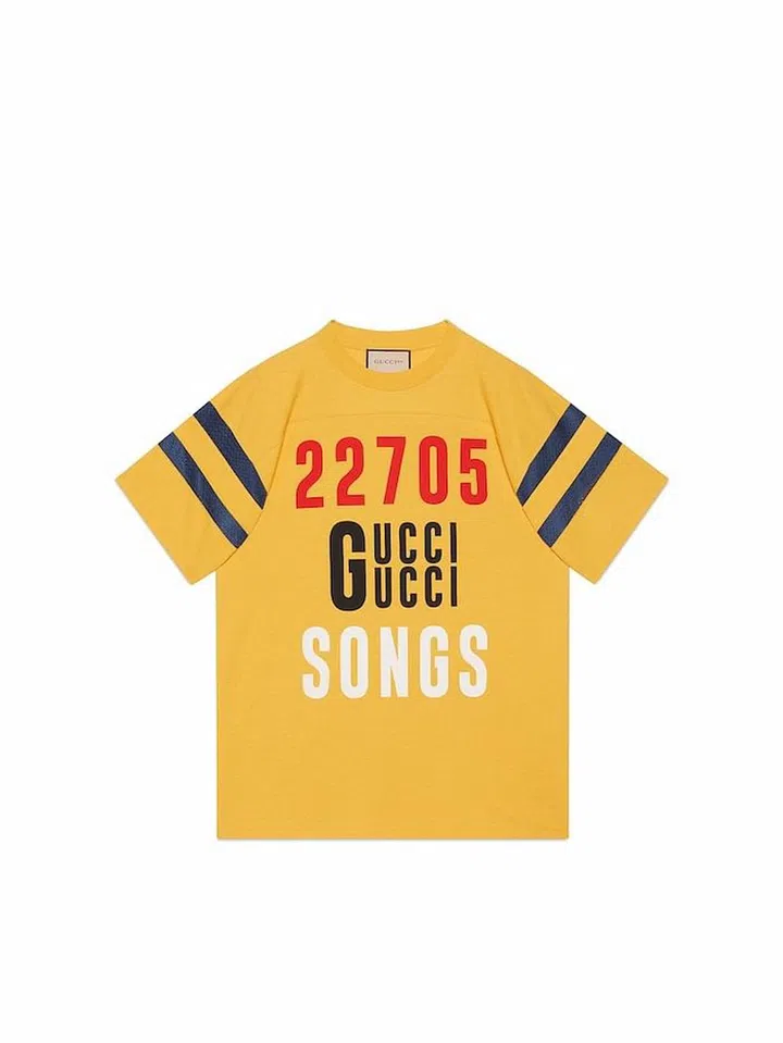 A mainstay in pop culture, one of the themes that underpinned this special celebration are songs that name dropped the storied house. Creative director Alessandro Michele has specially curated a series of lyrics and designed them onto a selection of ready-to-wear and accessories, sometimes with the special edition Gucci 100 logo.