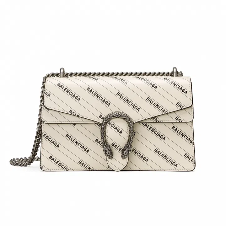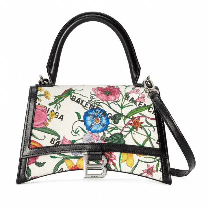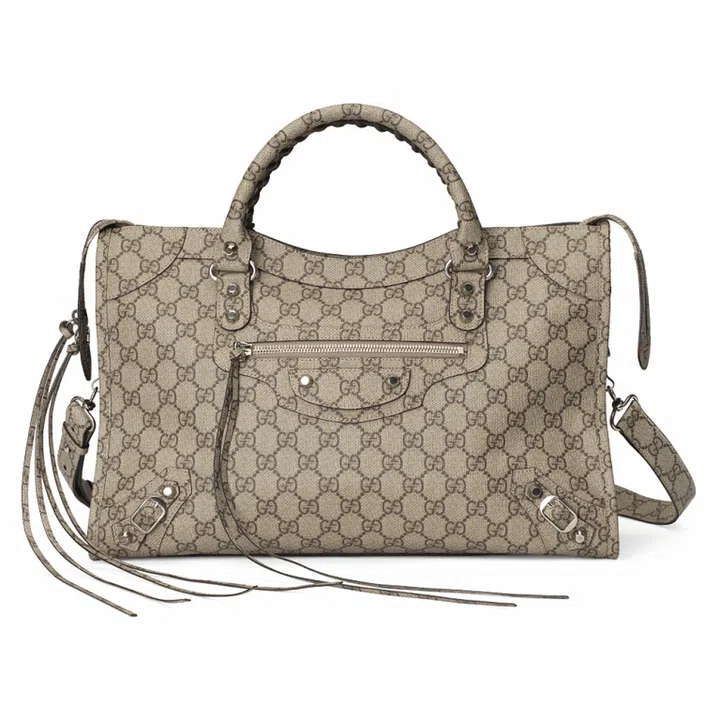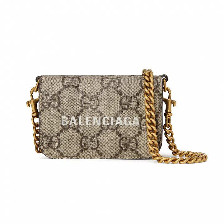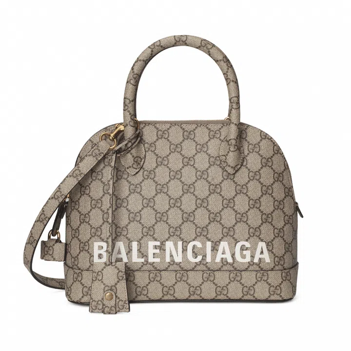 Bags from Balenciaga such as Hourglass and City receive the Gucci treatment in the form of the GG Supreme canvas, the Flora print and the contrasting green and red colourway of the iconic Gucci webbing. Meanwhile, Gucci’s own bags such as Jackie 1961 and Horsebit 1955 are stamped with the Balenciaga name.