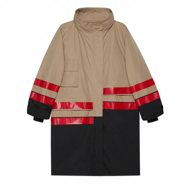 The starting point for Gucci is Demna Gvasalia’s maiden collection for Balenciaga for the Fall/Winter 2016 season. In that monumental debut, Gvasalia reimagined Cristobal’s couture shapes with padded hip suits, off-shoulder anoraks and co-ord fabric boots.