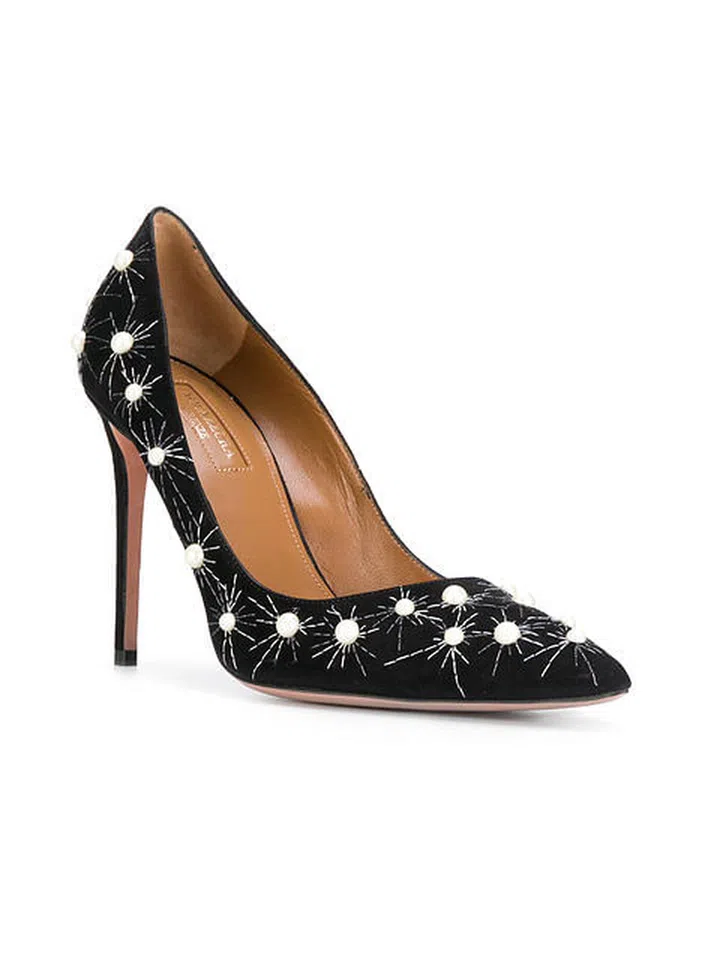 Aquazzura Stella faux pearl embellished pumps, now SGD 1,552, from www.farfetch.com. Shop it here.
