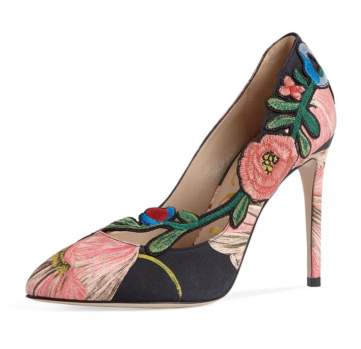 Gucci flower applique-covered pumps, SGD 1,245.30, from www.neimanmarcus.com. Shop it here.