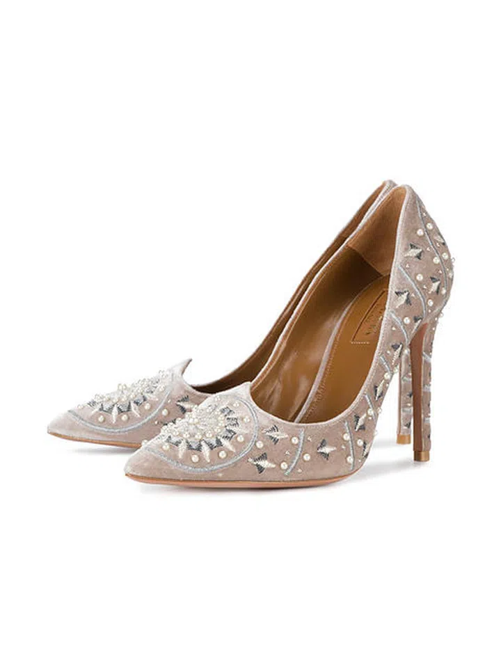 Shining like a bride just got easier with these pearl-embellished pumps designed to mimick stars in the night sky - stunning for the evening. We'd opt for a gown with a slit just to flaunt these babies.