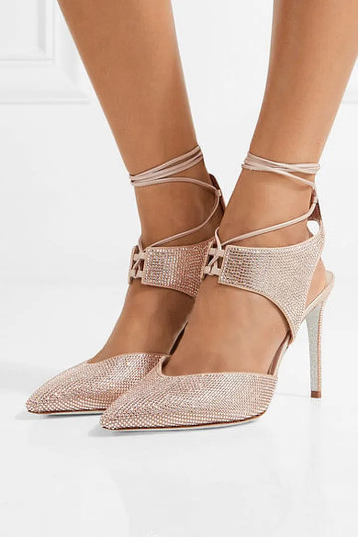 Rene Caovilla crystal-embellished satin pumps, now USD 1,620.48, from www.net-a-porter.com. Shop it here.