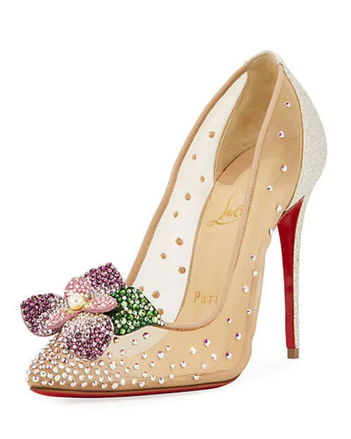 Christian Louboutin mesh pump with crystal floral detail, SGD 2,190.20, from www.neimanmarcus.com. Shop it here.