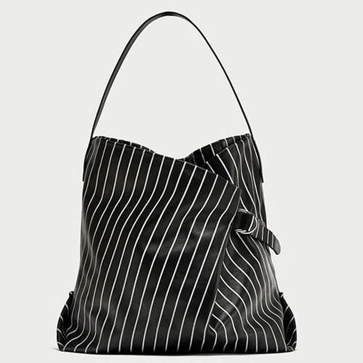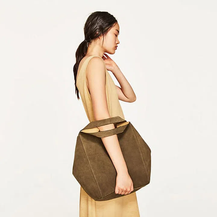This taupe coloured bucket bag, with it’s contemporary geometric silhouette, offers a luxe upgrade to our usual gaudy neon duffel bags. You’ll be looking chic and stylish in this unconventionally fashion-forward tote bag.