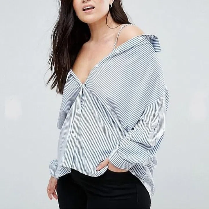 If you’re sporting a sports bra, you can button this number up all the way up or wear it off-shoulder if you’ve been training in a spaghetti strapped camisole.