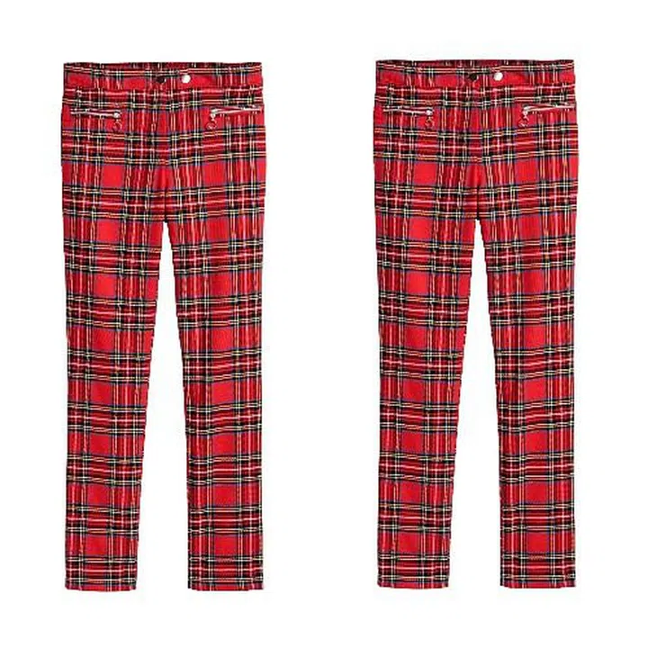 Style tip: Black ankle boots are the perfect companion to these pants...delivering the edgy / rock chic vibe that tartan pants so yearn for.