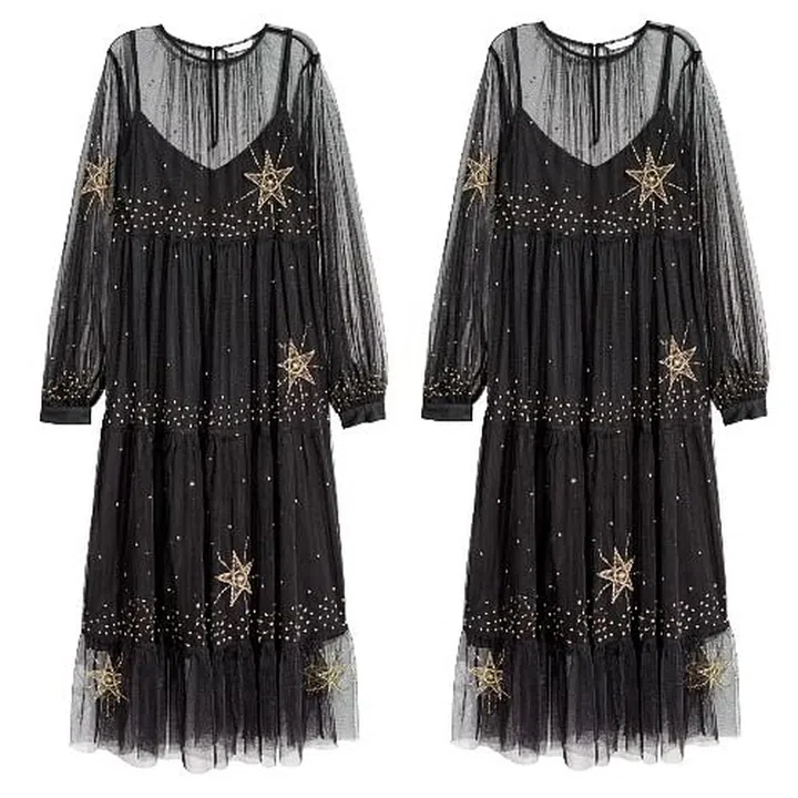 Style tip: Gold accessories will help accentuate the top layer of embroidery, so we recommend adding some gold drop earrings and either strappy gold heels or, if you're not feeling that girly, you can pair with black lace up boots...just like the pair featured in this gallery! Oh, and a lick of red lipstick will work wonders too.