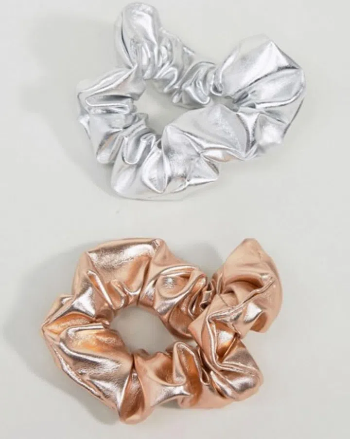 The '90s phenomenon is back in a big way. Wear the throwback accessory best with a carefree up-do, looks great teamed up with denim. This pack of 2 metallic hair scrunchies is a must-add to your hair accessories shopping list, available at ASOS.