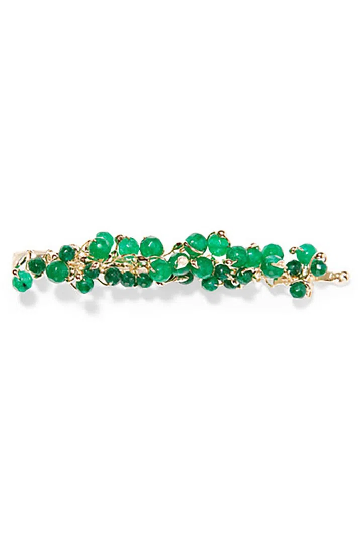 Dazzle with these beautiful jewelled pieces. Using traditional Italian techniques, this handcrafted gold-tone slide is bejewelled with green quartz beads. Wear two together to sweep back your hair.