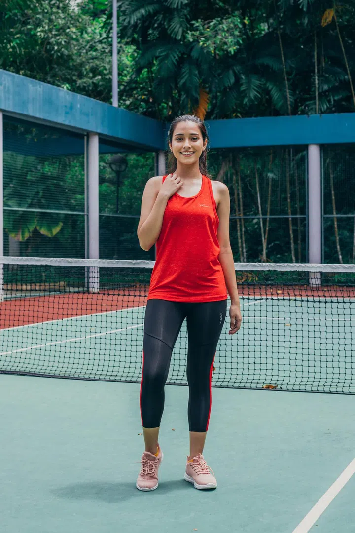 Layer a singlet over your sports bra and workout tights to ensure that nothing gets in your way while you’re climbing up.