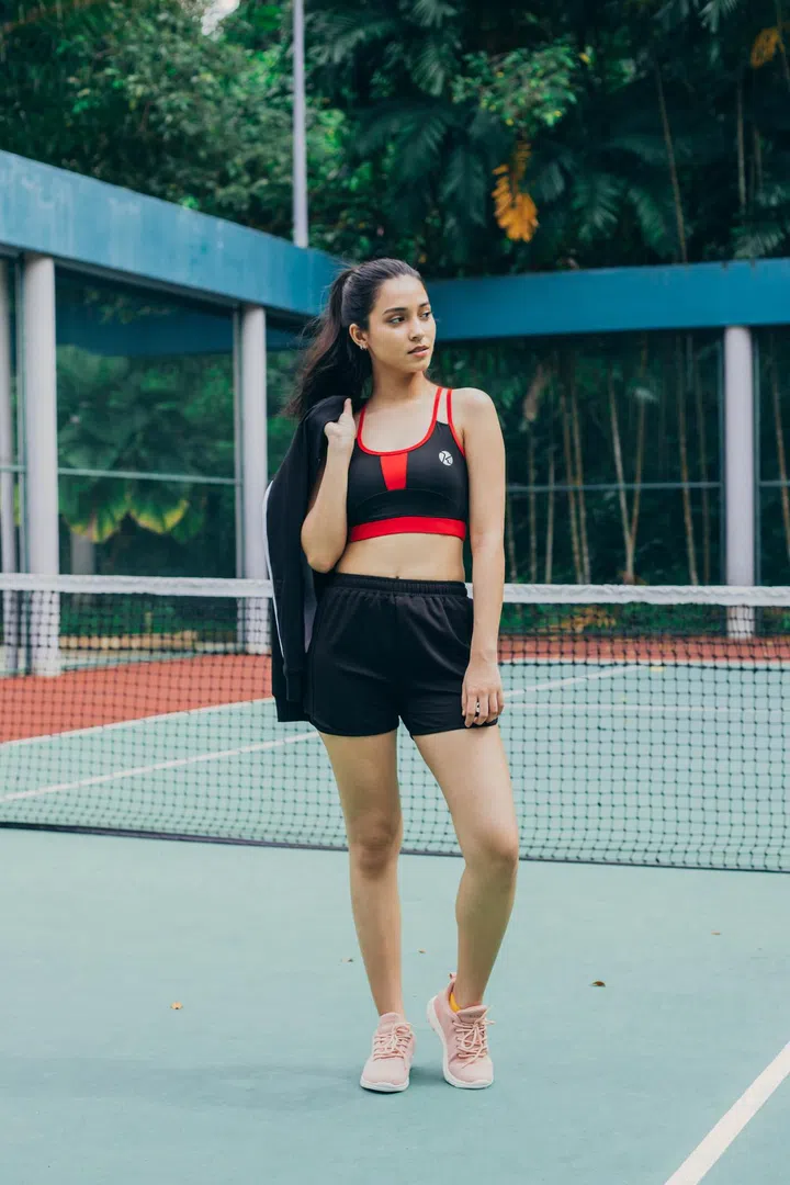 Who says workout clothes have to look dull and boring? A splash of colour, such as the red accents on the pieces above, adds an element of surprise to your yoga gear without appearing too over the top.