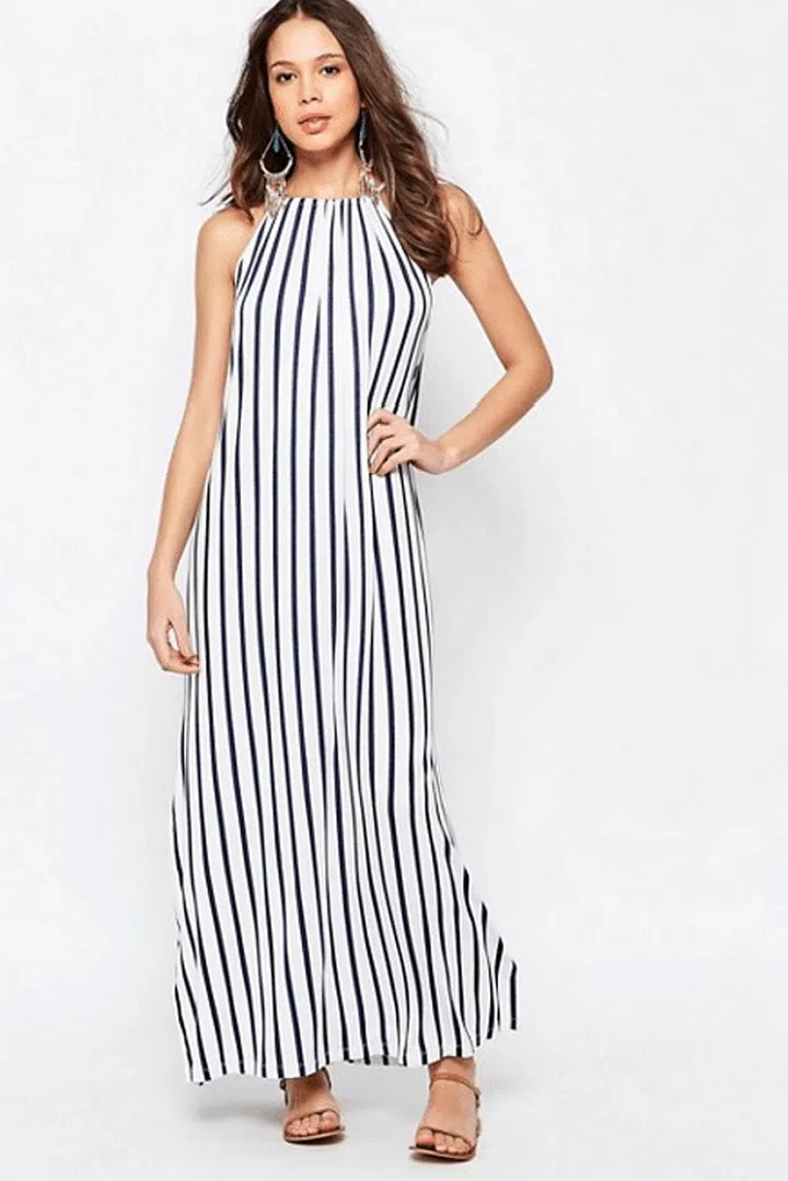 Avoid square and straight across necklines, instead go for halter, halter strap or V shaped necklines as these will give you a feminine form.