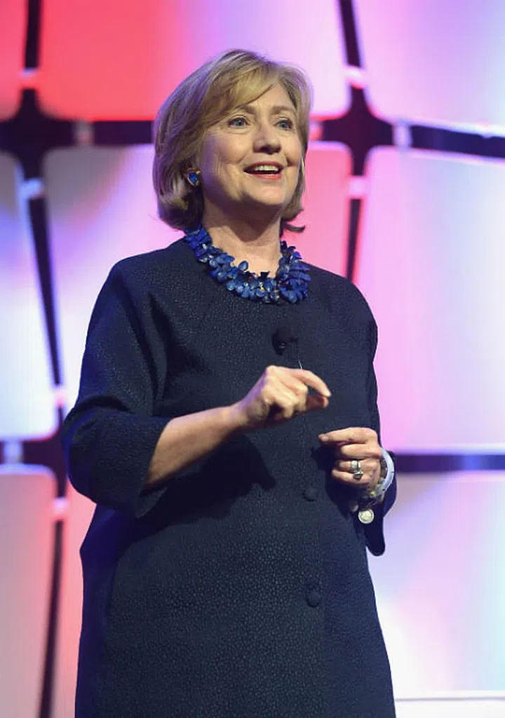 Hillary skillfully diffuses that perception by balancing her structured suits with feminine statement necklaces that complement her skin tone.