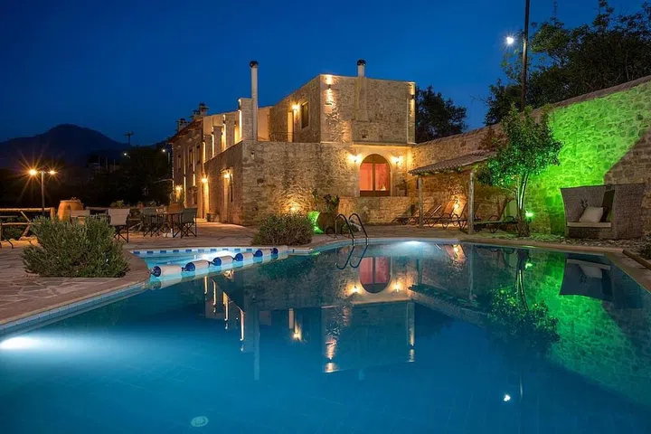 Nestled within lush landscapes of centuries-old oaks, olive groves and meadows, the space boasts impressive amenities such as a salt water pool and a stone amphitheatre that's great for large events.