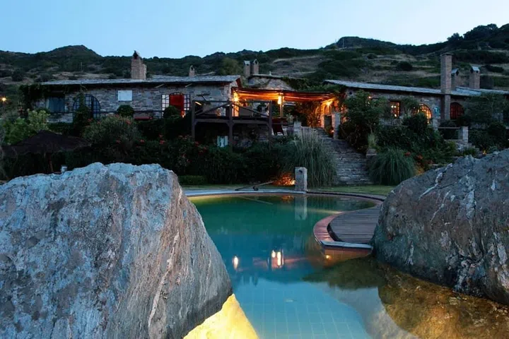 What we love: it's like staying in a small village with familiar faces, filled with luxurious amenities like a swimming pool, sauna, barbecue pit, Turkish steam room, jacuzzi, and breathtaking views of the Aegean Sea.