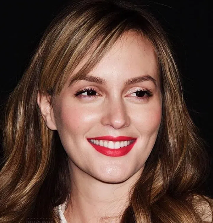 Brighten your big day look with a pop of cherry red, as seen on Leighton Meester, then pretty it up with a pearlescent pink on the eyes.