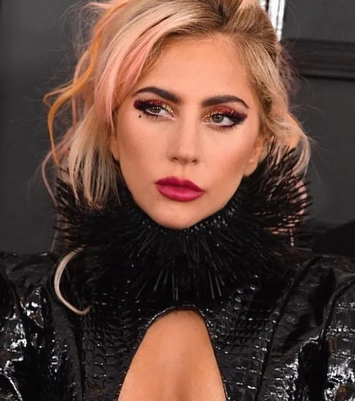 For the 59th Annual Grammy Awards, Lady Gaga's go-to makeup artist gave the pink look a sparkly update with glittery eyeshadow to match a dark pink pout.