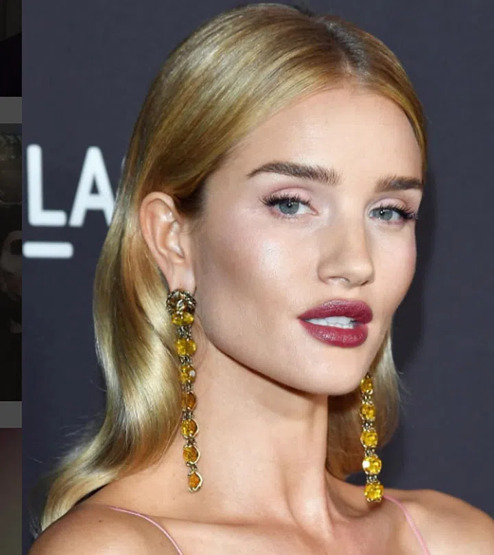 Celebrity makeup artist paired Rosie Huntington-Whiteley's dark berry kissers with soft eyeshadow for a sophisticated look that can take you from day to night.