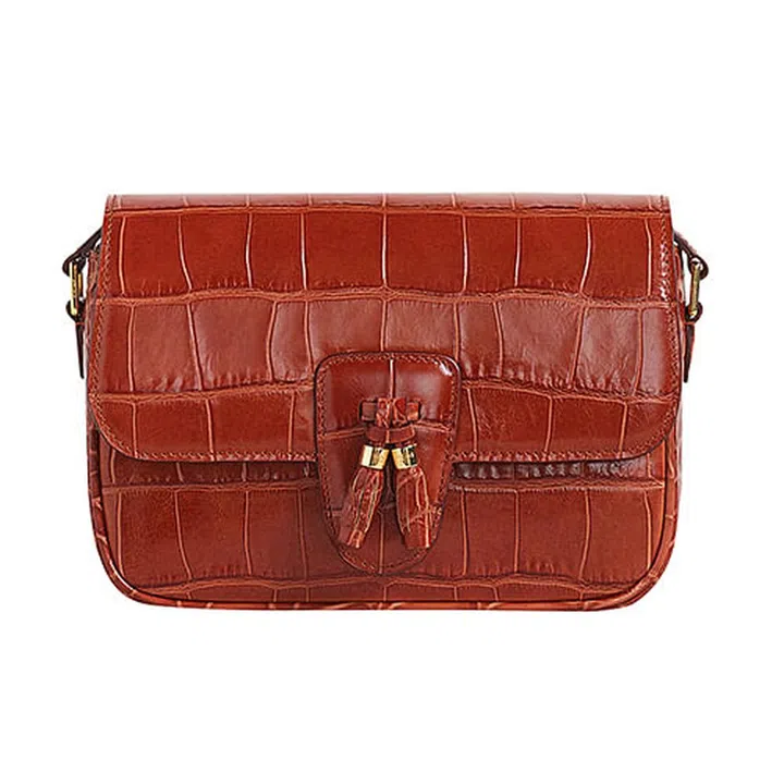 This Celine piece is the ideal refreshment of your already worn out brown saddle bag, but with a twist to it. Its brown colour still makes it versatile but the addition of the embossed croc-effect and tassels add an interesting twist to this flap crossbody bag.