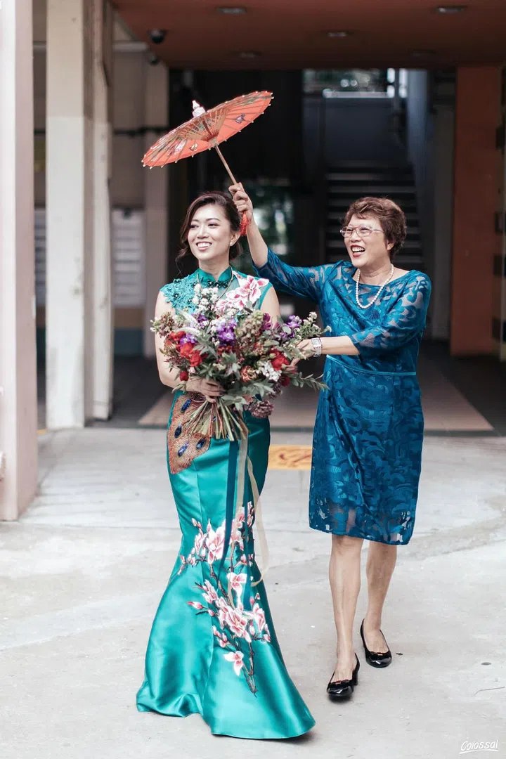 Bride Andie Chua had a jewel-toned theme wedding and found just the cheongsam for it from Taobao and it's quality surprised her. The mermaid cut added a contemporary flair to the cheongsam.