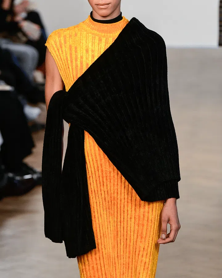 Sometimes, the mantra should really be “go big or go home”. If you’ve never imagined pairing yellow with black, now is the time to get adventurous. We like that this runway look incorporates black as an add-on piece tied to the yellow dress. This is an idea we can easily replicate by tying a different coloured cardigan around the waist or shoulder. Photo: Showbit