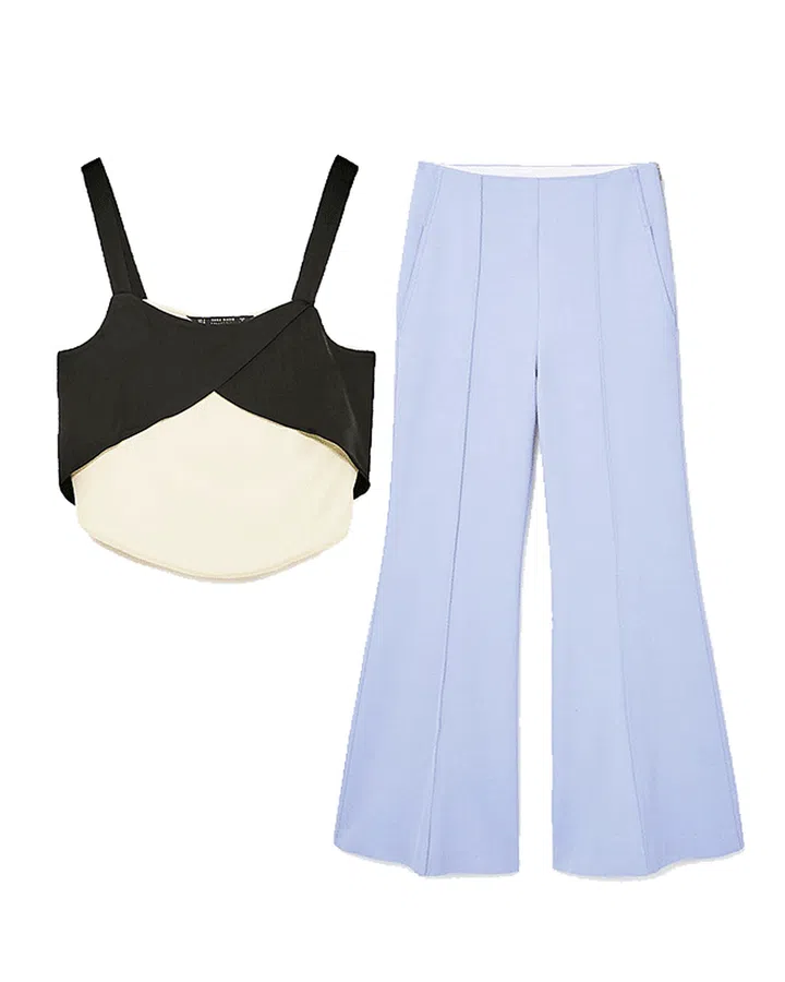 This outfit is dainty and cohesive, but still puts you in the limelight because of the unique pastel blue pants. We’re so digging the trouser leg that grazes the floor – we gladly welcome anything that makes our legs look like they go on forever, amiright? Put on a pair of white heels and you’re ready to be a master of colour-blocking. Photo: Zara, Mango