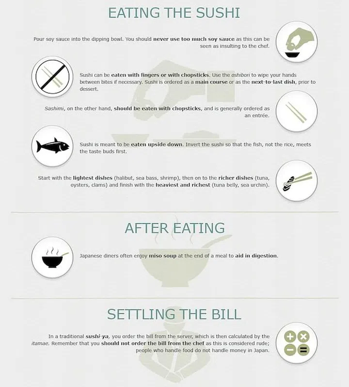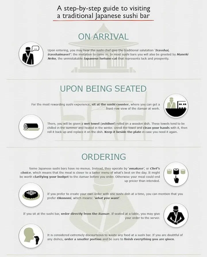 In Japan, where eating sushi is almost an art, you don't want to be seen as an ignorant foreigner. Learn proper sushi etiquette so you know what do when you visit a traditional sushi bar in the Land of the Rising Sun.