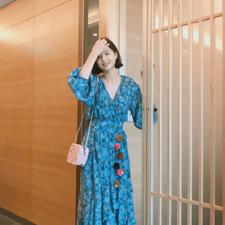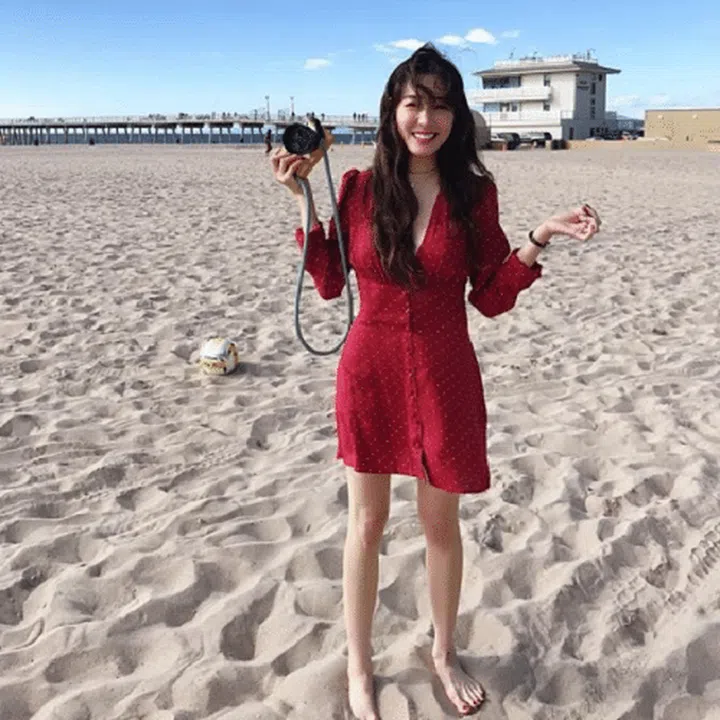 Tops and dresses with a deep “V” neckline like this one seen on “Flower Boys Next Door” actress Park Soo Jin can help to give the illusion of a longer and leaner torso, which makes you look taller. Bear this tip in mind next time you go clothes shopping.