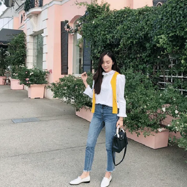If you want to ditch those sky-high heels, invest in a pair of pointy flat like this pair of leather loafers seen on South Korean singer Jessica Jung that will lengthen your leg line.