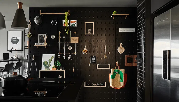 “I like things simple, but with a bold or unexpected detail or twist. In a similar vein, no one area in the house is entirely black. I complement black with shades of grey, add colour to every corner with plants and accessories, and play with different textures, such as the birch wood pegboard and tiled panel at the entrance. These give the home more life, and break the monotony of a monochrome interior,” says Sherlynn.
