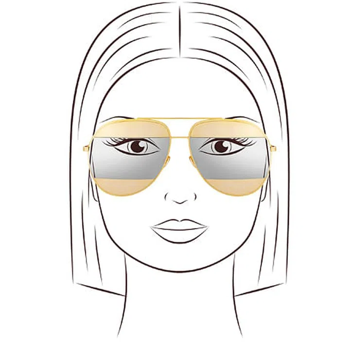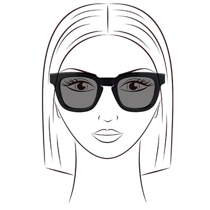 Suitable styles: You should go for oval frames that are narrow to softer the angles and make your face look longer. Pick circular frames with soft lines, or rimless edges for a balanced look. Classic aviator sunglasses are your best bet.