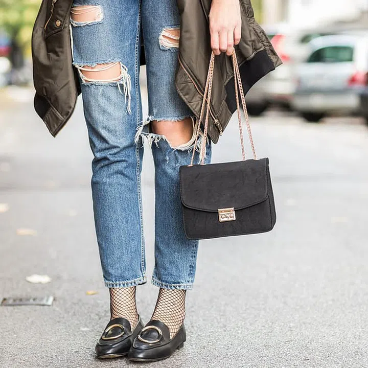 The distressed thing got taken way, way too far when the holes exposed the entire knee and thigh area and started flapping around the leg. Let’s pull it back now, mmkay?