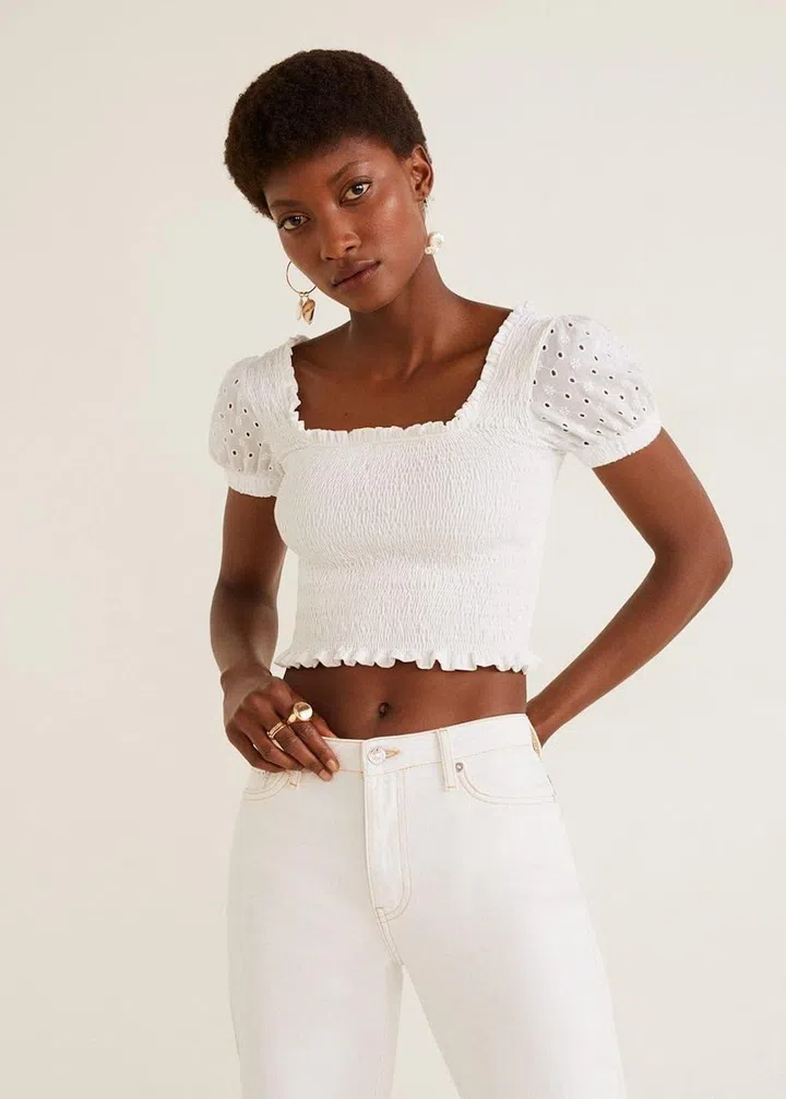 It’s the weekend so it’s time to cut loose. Dare to bare, your midriff that is, with this white broderie anglaise top from Mango. Wear with a pair of high-waisted jeans and finish the polished yet casual look with hoop earrings and wedges.