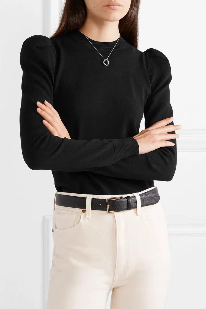 Replace your everyday work blouse with this luxurious yet simple black Co sweater. Its padded shoulder detail is obvious enough for you to ease into the trend without going too OTT. Match this elegant number with a pair of sleek wide-legged trousers and kitten heels.