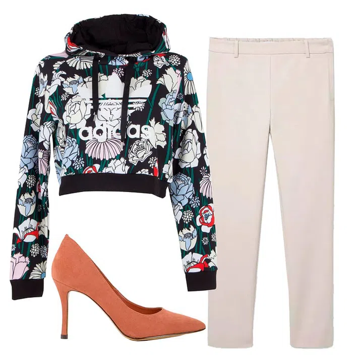 Another way to style your hoodie is to wear them with slim trousers. Matching printed hoodies with light-coloured trousers and pumps are a great way to luxe up an otherwise casual piece. Metallic or textured sneakers or pumps will really elevate this look, keeping you feeling chill yet stylish.