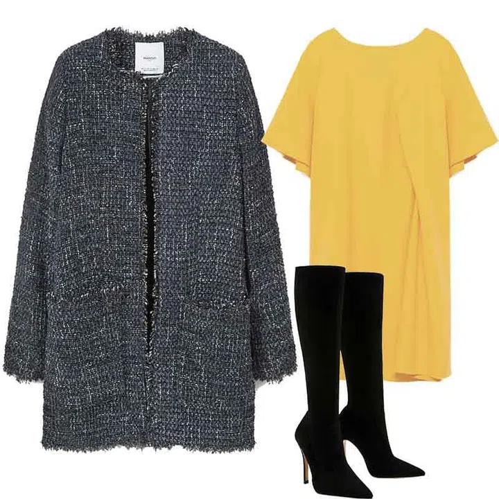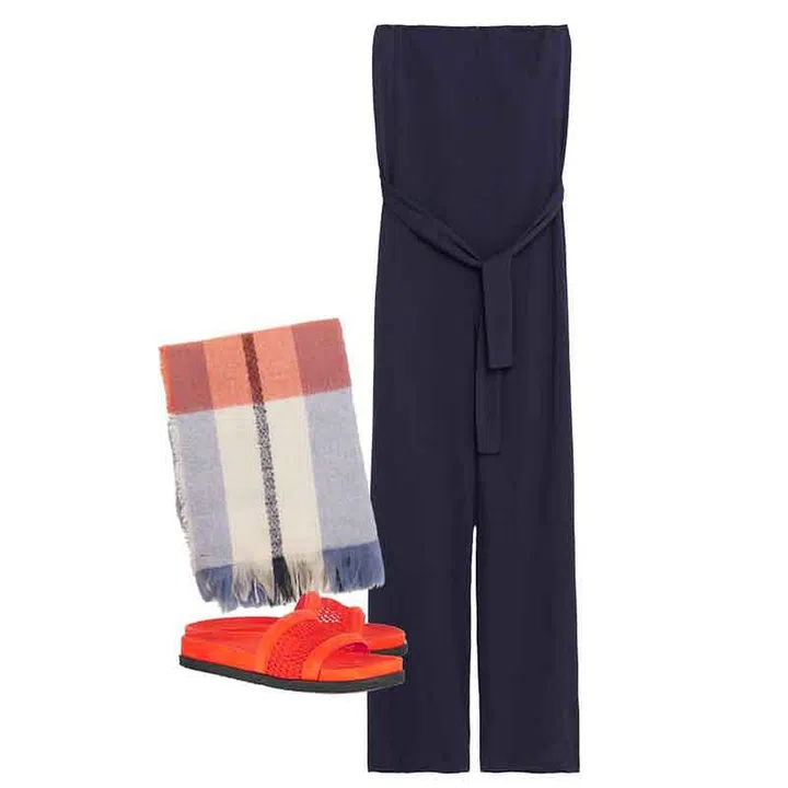 You might be in for a rough week, but you might as well put up with it in some modicum of ease. There are a few “cheat pieces” that every working woman should own, which are pieces like jumpsuits and luxe tees. This dark navy jumpsuit and the bright textured slides work together so beautifully; it’s in this way that you should use colours to really create a stylish look while keeping things loose. Remember to have a cute scarf on hand should the office get a bit chilly.