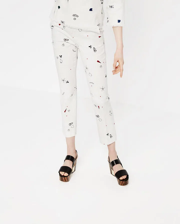 The print on the pants may be unconventional, but it is versatile - dress it down with a plain T-shirt or dress it up with a white long-line blazer.