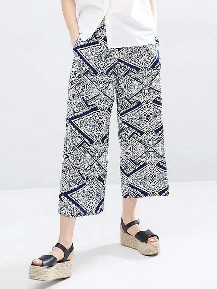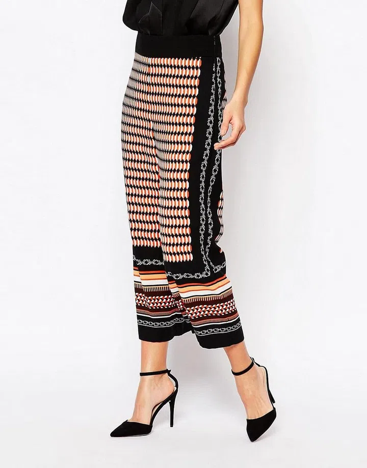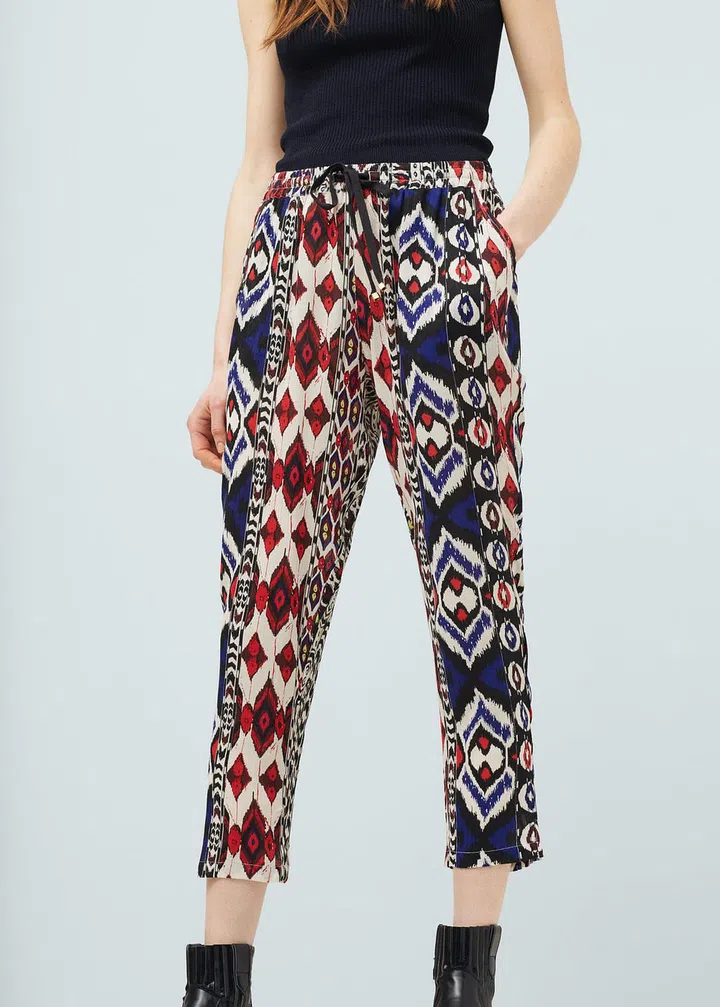 To get more mileage out of your printed pants, pick one in a colour that matches the rest of your wardrobe so that you have more outfit variations.
